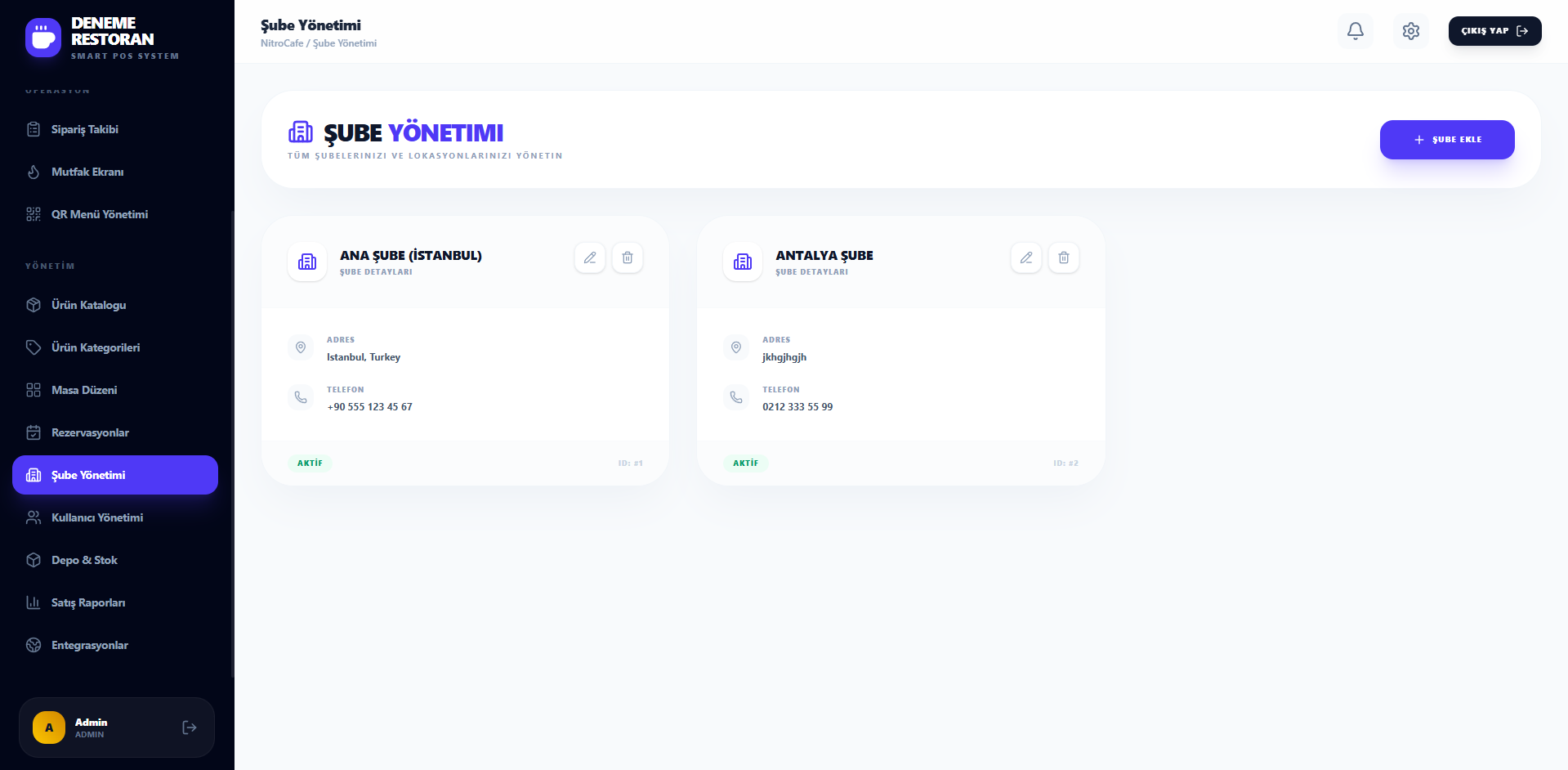 Birden fazla şubesi bulunan işletmeler için NitroCafe güçlü bir merkezi yönetim paneli sunar. Tüm şubeler tek panel üzerinden kontrol edilebilir, raporlar karşılaştırılabilir ve operasyonel süreçler merkezi olarak yönetilebilir.