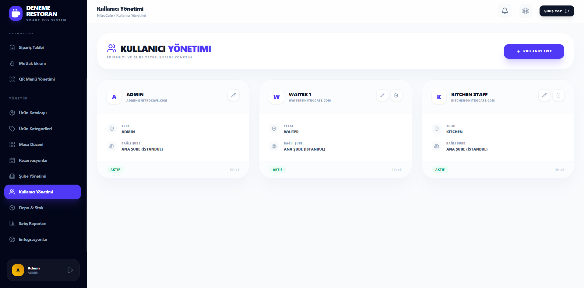 Restoran, kafe ve hızlı servis işletmeleri için geliştirilen **NitroCafe**, sipariş yönetiminden mutfak ekranına, QR menüden satış analizlerine kadar tüm operasyonları tek bir platformda birleştiren modern bir restoran otomasyon sistemidir. Hız, sadelik ve ölçeklenebilirlik üzerine tasarlanan NitroCafe; işletmelerin servis süreçlerini hızlandırırken, yönetim tarafında güçlü bir kontrol ve analiz altyapısı sunar.