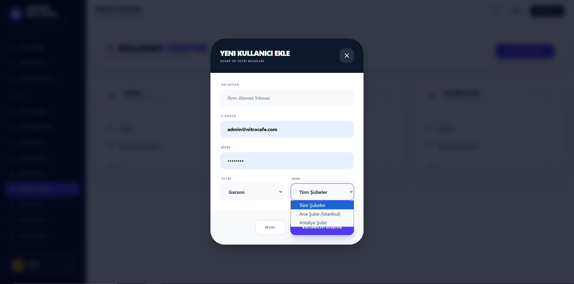 Birden fazla şubesi bulunan işletmeler için NitroCafe güçlü bir merkezi yönetim paneli sunar. Tüm şubeler tek panel üzerinden kontrol edilebilir, raporlar karşılaştırılabilir ve operasyonel süreçler merkezi olarak yönetilebilir.
