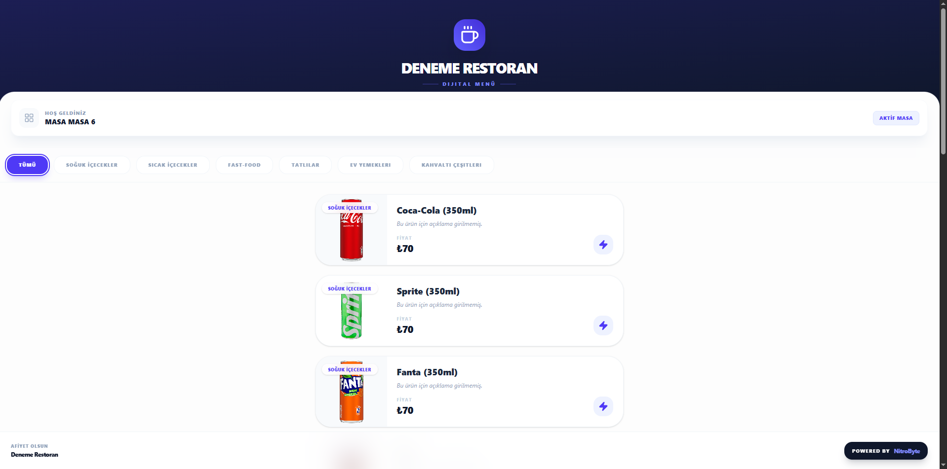 NitroCafe, restoran işletmelerinin operasyonlarını dijitalleştirerek daha hızlı servis, daha iyi müşteri deneyimi ve daha güçlü yönetim araçları sunmayı hedefleyen modern bir restoran otomasyon platformudur.